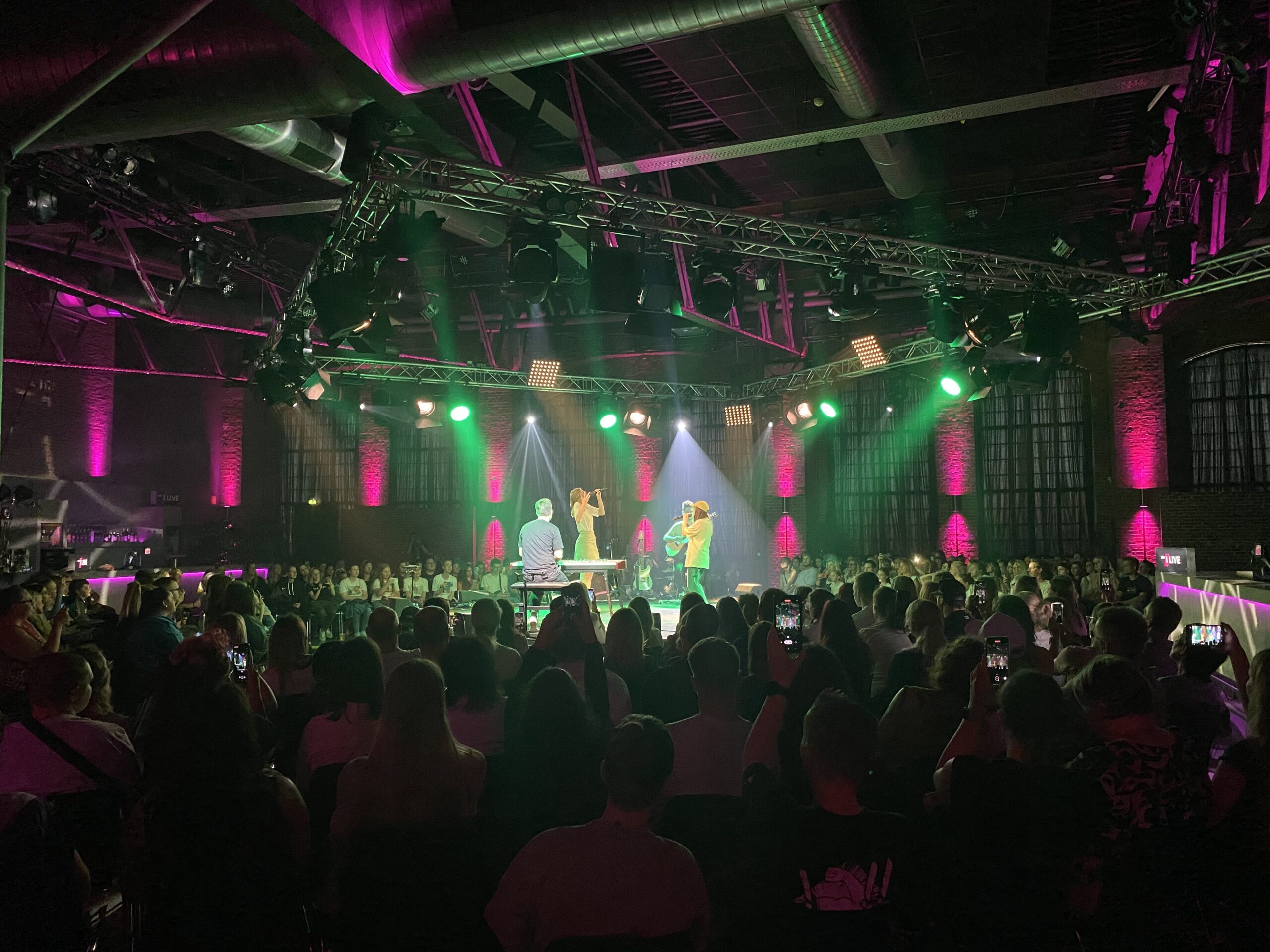 In dem kleinen Raum im Lokschuppen mit nur 300 Menschen begann das Konzert mit Lunas Song „blau“. Gänsehaut und das Gefühl als würde einem Musik umhüllen. Durch die in der Mitte des Publikums platzierte Bühne erreichten die Sängerinnen ein Wohnzimmer-Feeling. Lunas Outfit verkörperte die entspannte und gelassene Stimmung, ein weißes oversized T-shirt, eine lockere blauen Jeans, Sneaker und ihre Markenzeichen eine Cap. An diesem Abend reichten ihr die Begleitung an der Gitarre und ihre ruhige aber zu gleich markante Stimme um den Raum auszufüllen. „Blau“ verkörpert das Gefühl irgendwie anders zu sein aber auch gleichzeitig den Appell sich nicht verändern zu müssen: